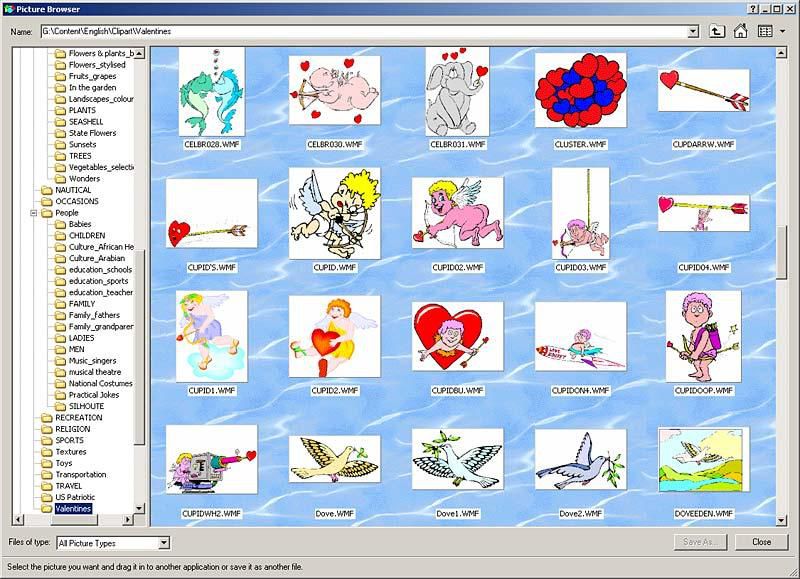 Данная программа - отличный способ сделать недорогой и оригинальный подарок своим родным и близким, коллегам и, вообще, кому только пожелаете. Все изображения выполнены профессиональными дизайнерами, но использовать их можно без лицензионных отчислений. Их можно конвертировать в 10 самых распространенных форматах: CGM Metafile, GEM Metafile, GIF Bitmap (Internet), JPEG Bitmap (Internet), PCX Bitmap, PNG Bitmap, TIFF Bitmap, Targa Bitmap, Photoshop Bitmap, Windows Bitmap.