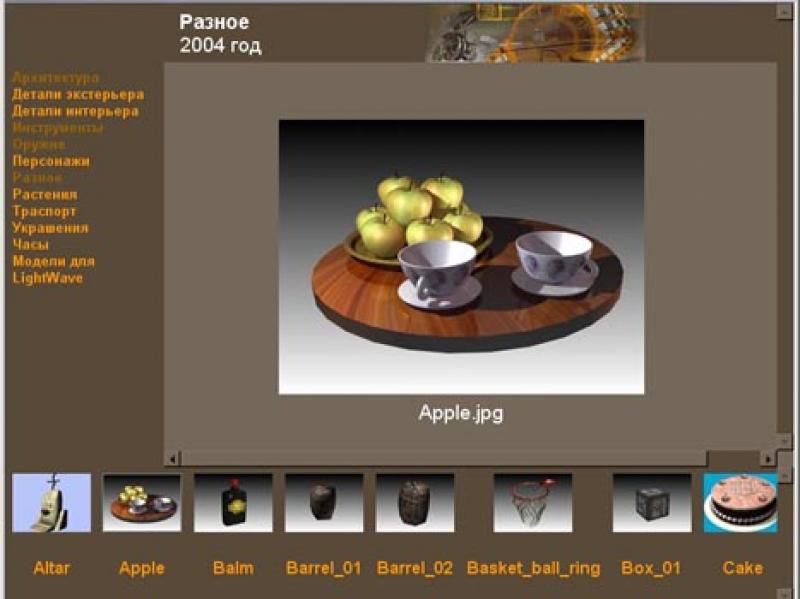 На диске представлено 350 3D-моделей для 3D-MAX и LightWave. В 12 тематических разделах каждый найдет то, что ему нужно: от старинного сундука до великолепной "Феррари", а также всевозможные здания, украшения, сказочных героев и многое другое. Воплощение самых смелых идей рекламных макетов, обложек, коллажей станет возможным благодаря богатой коллекции изображений, собранной на диске. Качество файлов и реалистичность текстур соответствуют самым высоким современным требованиям.