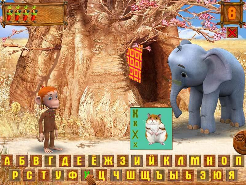 Далеко-далеко в джунглях живут Мартышка, Удав, Попугай и Слоненок… Мартышка собирается идти в школу, но она совершенно ничего не знает… Что же, придется ее готовить! Конечно, есть Мартышку никто не собирается - мы будем готовить ее к школе с помощью самых что ни на есть наглядных и ненаглядных пособий. Как вам понравится складывание геометрических фигур из Удава? Или изучение счета с помощью бананов? Ну и, конечно, длину Удава мы тоже непременно измерим - в Попугаях!