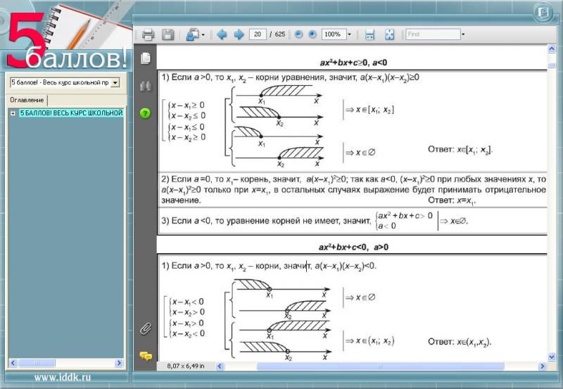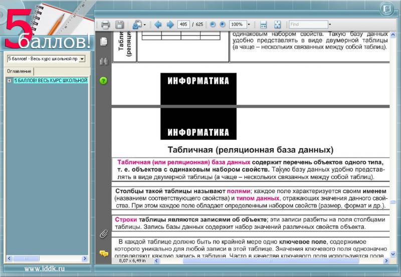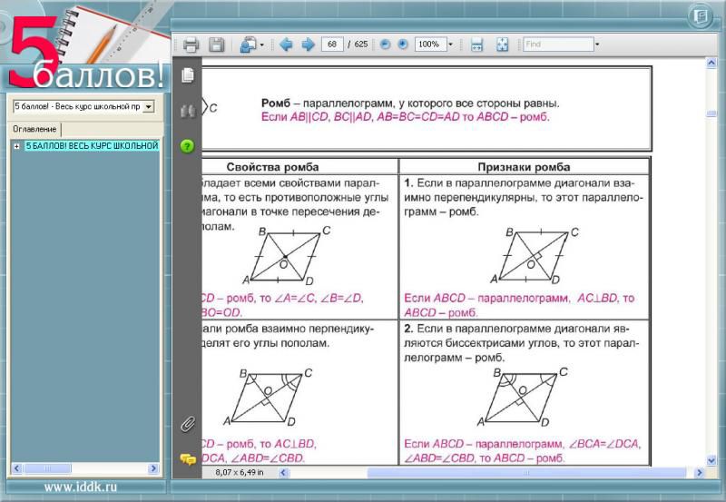 Этот диск предназначен для учащихся общеобразовательных школ. В наглядных таблицах и схемах изложен весь материал школьной программы по математике, физике, химии, информатике и биологии. Пособие можно использовать для подготовки к урокам, контрольным и самостоятельным работам. Предложенная форма подачи материала удобна для старшеклассников и абитуриентов при подготовке к экзаменам, т. к. позволяет систематизировать знания, облегчает понимание сложных определений, понятий и формул.