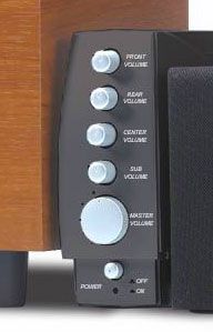 питание, основная громкость, громкость фронтальных сателлит, громкость тыловых сателлит, громкость центральной сателлиты, громкость сабвуфера |