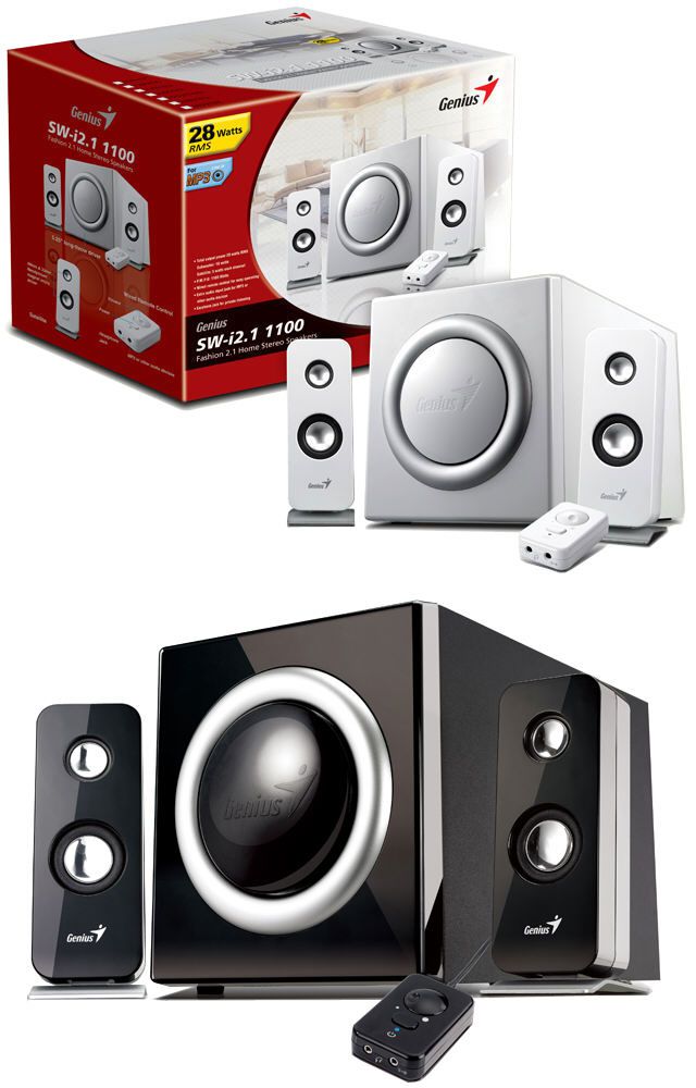 В деревянный сабвуфер встроен низкочастотный 5.25” динамик. Пластиковые сателлиты состоят из высокочастотного динамика на основе неодима 32 мм и широкополосного динамика на основе неодима 48 мм. С помощью проводного пульта управления легко можно включать и выключать систему SW-i2.1 1100, регулировать громкость, а также подсоединить наушники и такие устройства как MP3 / CD-плееры, проигрыватели и т.д.