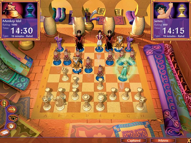 Где лучше всего учиться игре в шахматы? Конечно же, на Востоке! Новая компьютерная игра с персонажами известного диснеевского мультфильма «Аладдин» поможет вам познакомить ребенка с шахматами. Вместе с полюбившимися героями – Аладдином, принцессой Жасмин, обезьянкой Абу – и другими персонажами этой великолепной сказки он совершит волшебное путешествие, во время которого познакомится с правилами игры в шахматы, постепенно изучит стратегию и тактику, соберет собственный набор фигур, решит множество шахматных головоломок. Начав с выполнения простых задач, используя магические артефакты и следуя подсказкам рассказчика, юный шахматист пройдет восемь глав путешествия. Вскоре он станет достойным соперником, способным сразиться с самим Джафаром и избавить жителей Аграбы от его злых козней.