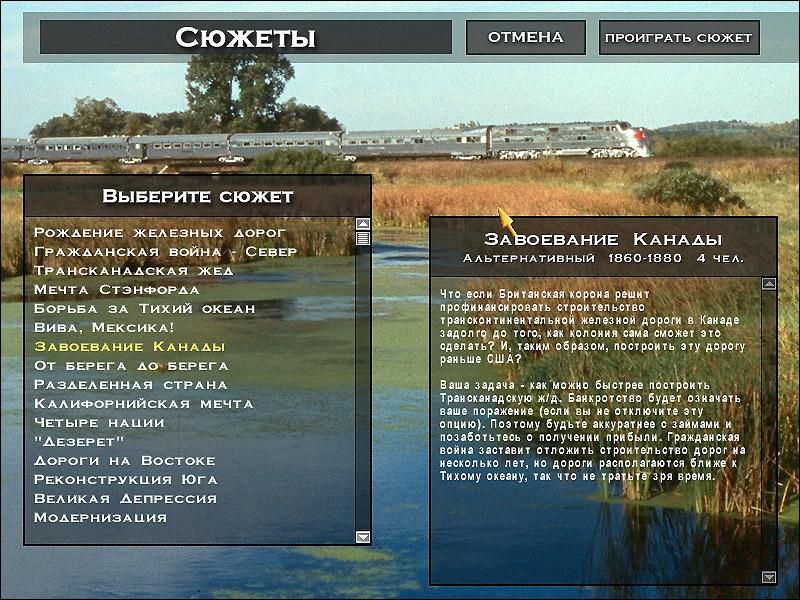 Игра использует принципиально новый геймплей, и вместо денег, которые являются главным козырем в подобных играх, здесь вам придется зарабатывать престиж и репутацию! Любые средства хороши, чтобы заслужить уважение: улучшайте качество рельс, стройте трансконтинентальные магистрали и семафоры, обойдите всех в скорости перевозок – делайте все, чтобы стать успешным железнодорожным магнатом!