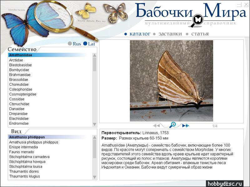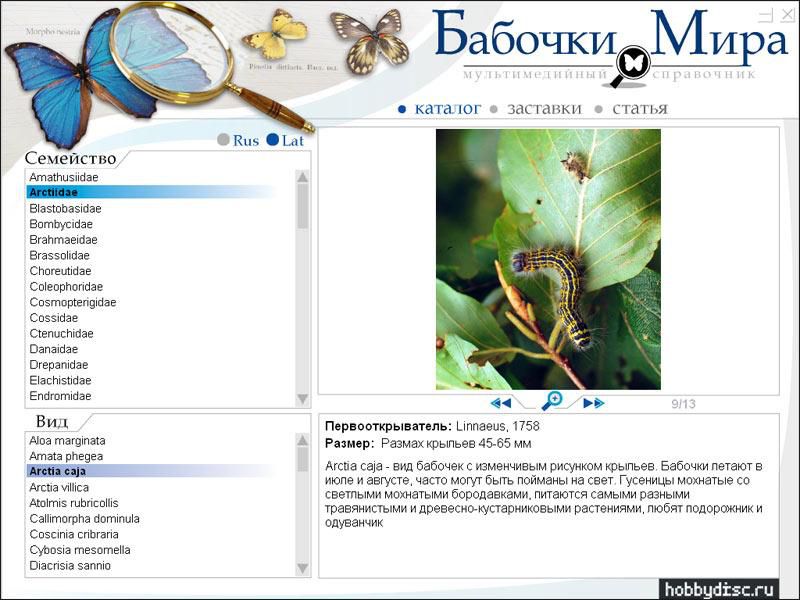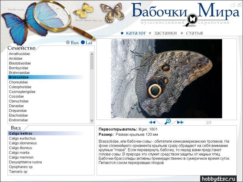 Диск посвящен самым ярким и красивым представителям класса насекомых - бабочкам. В общей сложности здесь описаны более 2500 видов из 70 семейств.