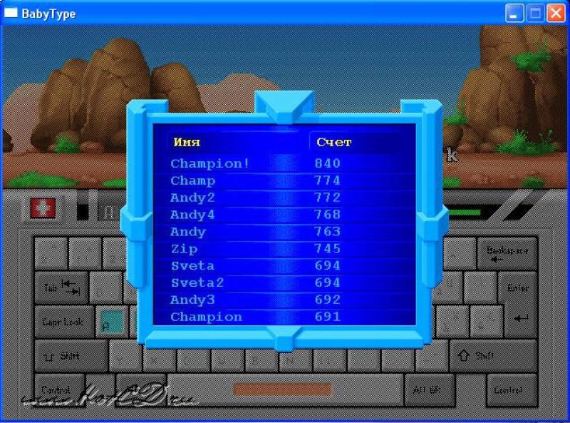 В процессе игры с Babytype 2000 вы уверено овладеете навыками десятипальцевой слепой печати.