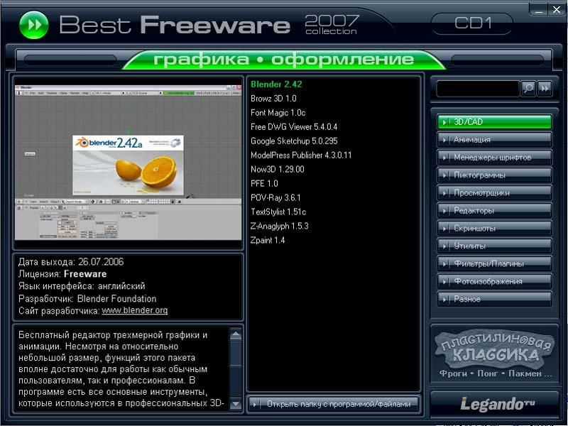 Сборник "Мультимедиа" из серии Best Freeware 2007 Collection включает последние версии наиболее популярных и получивших хорошие отзывы пользователей бесплатных приложений (которые по своим возможностям зачастую не уступают коммерческим аналогам).