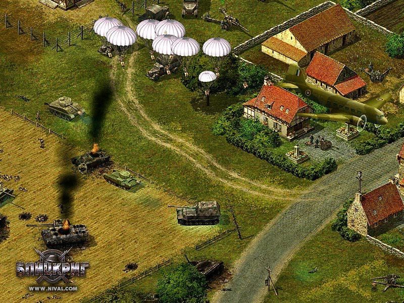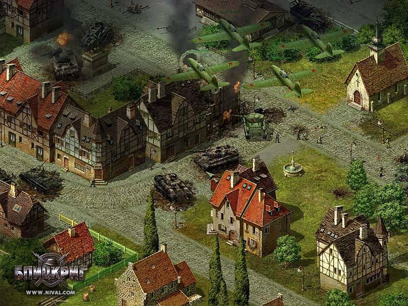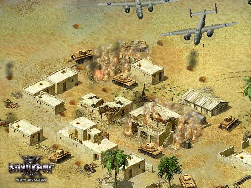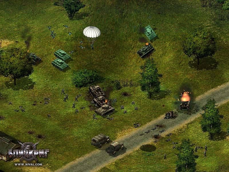 "Блицкриг" - военная стратегия в реальном времени, основанная на событиях Второй мировой войны. Почувствуйте себя Жуковым, Эйзенхауэром или Роммелем, приняв участие в исторических сражениях. Вы сможете командовать советской или немецкой армией, а также войсками союзников в трех широкомасштабных кампаниях, поделенных на несколько этапов. Вам предстоит сражаться в различных регионах мира и в разнообразных погодных условиях. Вас ждут африканская пустыня, умеренный климат европейских стран и холодная русская зима. В вашем распоряжении будет более 150 видов техники, включая танки, бронемашины и артиллерию. Вы получите возможность вызывать бомбардировщики и истребители, высаживать десант, использовать автомобильный и железнодорожный транспорт, а также богатый арсенал мин и инженерных заграждений. Вам будут подчиняться солдаты всех родов войск, владеющие различными воинскими специальностями: снайперы, автоматчики, пулеметчики, гранатометчики, артиллеристы, танкисты, саперы и многие другие. В ходе боев ваши подчиненные получат опыт, который позволит им более эффективно сражаться в дальнейшем, а вам будут присвоены новые звания. Операция "Барбаросса", оборона Сталинграда, высадка в Нормандии - вот лишь некоторые из событий, в которых вам предстоит участвовать. В вашем распоряжении будет техника, воссозданная на основе исторических документов. Видеоролики на тему Второй Мировой войны позволят вам погрузится в атмосферу того времени. Вы сможете проверить свои полководческие способности, участвуя в баталиях по локальной сети или в Интернет. Условия победы могут быть самыми различными: захват ключевого объекта, уничтожение всех врагов или их баз, набор определенного количества очков на время.