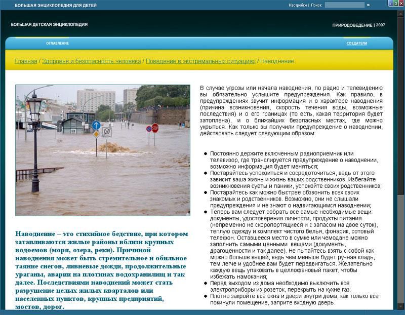В разделе «Здоровье и безопасность человека» содержатся ответы на вопросы как оказать первую помощь пострадавшему, что такое правильная осанка, к чему приводит курение, как действуют наркотики на человеческий организм, как сохранить жизнь при наводнении, землетрясении, во время грозы и урагана. Читатель узнает, как вести себя во время автокатастрофы и столкновении с опасными животными.
