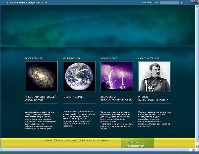 Раздел «Ученые естествоиспытатели» рассказывает о величайших путешественниках, первооткрывателях и исследователях, благодаря которым люди пополнили копилку знаний о планете Земля и ее обитателях.
