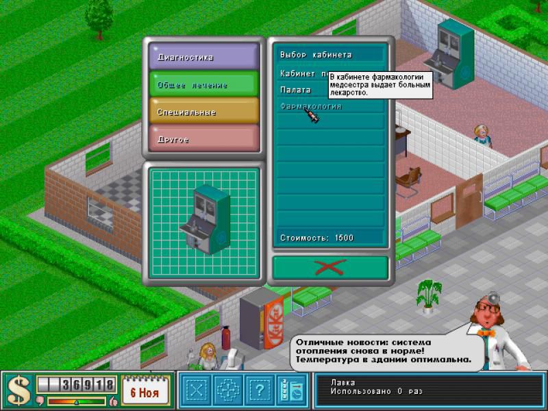 - Возможность проведения медицинских исследований. В перерывах между перекурами ваш медперсонал совершает гениальные открытия, позволяющие спасти больше людей… и заработать больше денег.
