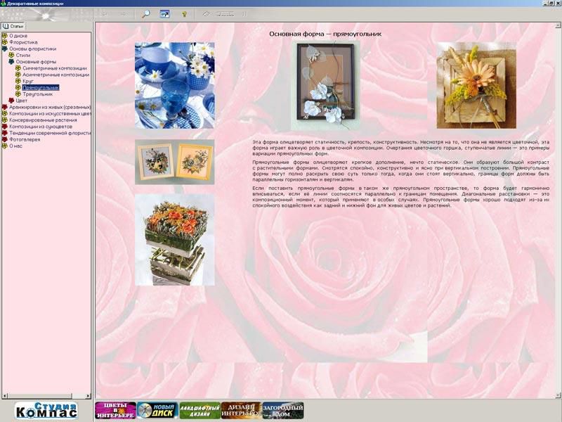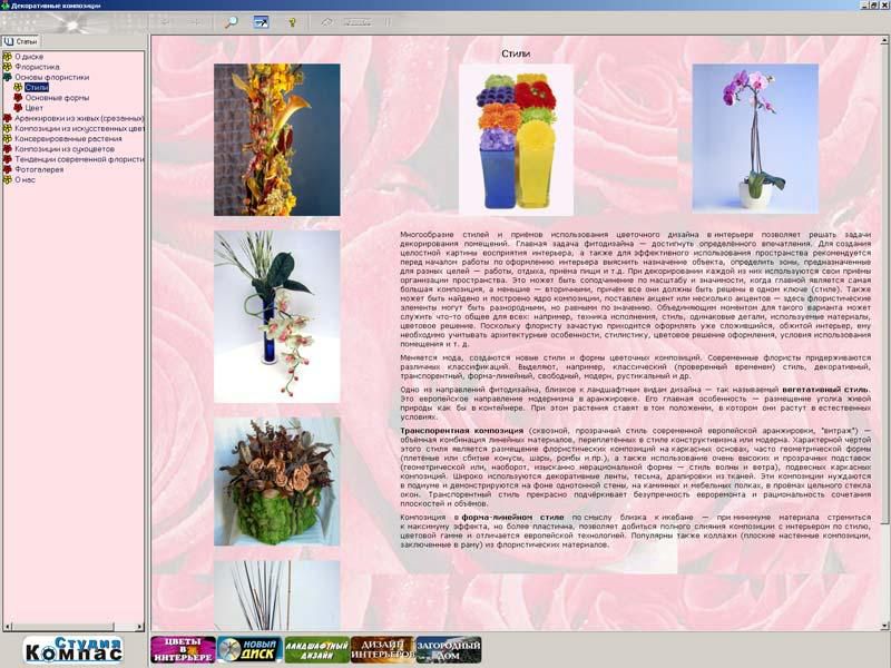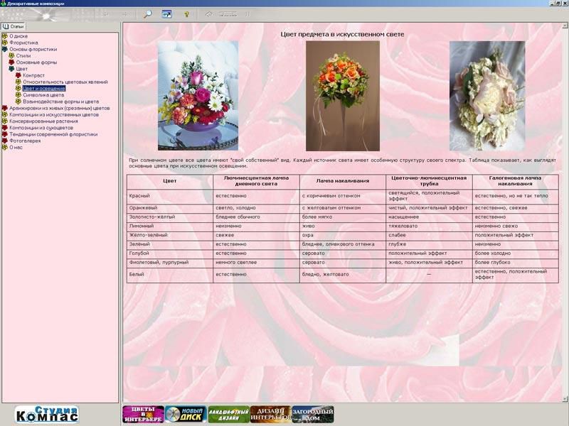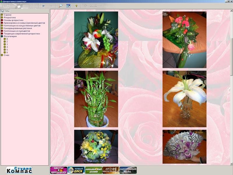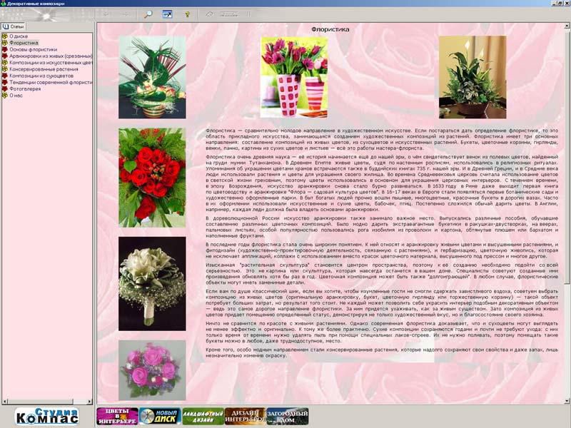 Обучающая компьютерная программа позволит освоить основы флористики, сэкономив время и деньги на дорогие обучающие курсы. Диск заменит массу дорогих глянцевых альбомов и учебных пособий.