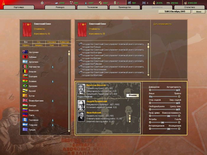 Новая улучшенная система дипломатии и разведки, отображающая их роль в 40е-50е гг.