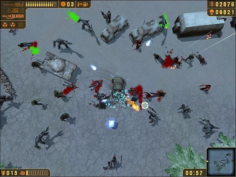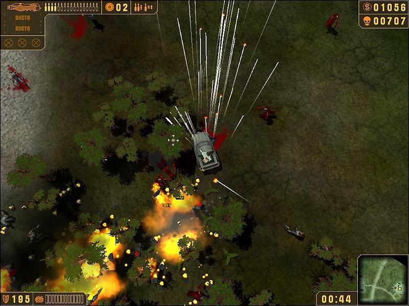 В опасные дебри параллельного мира ты отправляешься на небольшом вооруженном джипе. Тебе придется с помощью плотного огня прорываться сквозь орды кровожадных бродяг и ужасных мутантов до ближайшего сталкер-магазина, где можно прокачать тачку и навесить на нее очередной пулемет или базуку.