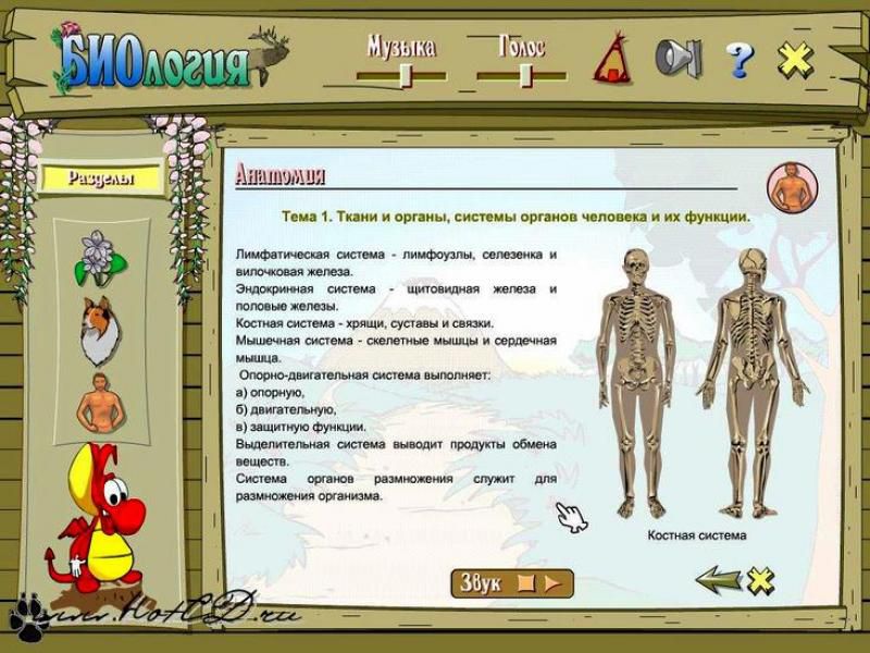 Дракоша и занимательная биология входит в серию обучающих игровых приложений, которые будут интересны и детям и взрослым любого возраста. Вы узнаете о том, какие живые организмы есть на земле и каковы принципы их существования. Обаятельный гид Дракоша, сопровождающий вас на протяжении всей игры, расскажет о растениях, животных и человеке. Имеется возможность проверить усвоение материала, ответить на тесты. В каждом рахделе есть игры, имеющие также и познавательный характер. Проходя успешно каждую игру, вы получаете очки как результат своих успехов.