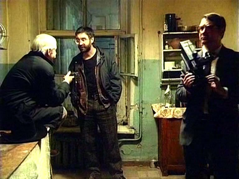 Юрий Шевчук ("Рок"), Анжелика Неволина (" Приятель покойника"), Юрий Демич ("Прорыв") в фантастико-детективной притче Сергея Сельянова"Духов день".