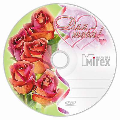 DVD-R Mirex "Для тебя !" с оригинальным праздничным дизайном – отличные и недорогие сувениры. Их можно дарить пустыми, или записать на них приятную музыку, красивые фотографии и видеоролики, можно использовать для промо-акций и подарков постоянным покупателям, и просто для создания праздничного настроения в витринах магазинов. Уникальная возможность красиво сохранить воспоминания на долгую память.