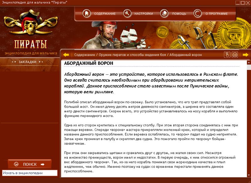 Пираты, или другими словами, хозяева морей. Вы хотите узнать о них все? Вместе с самыми известными, отважными и грозными пиратами вы окунетесь в их жизнь, узнаете о пиратских сражениях, их оружии, способах ведения боя и их сокровищах. Вы узнаете о том, какие мифы о пиратах правдивы, а какие полная выдумка, что такое «веселый роджер» и как пираты делили добычу. Готов к этому? Тогда вперед!