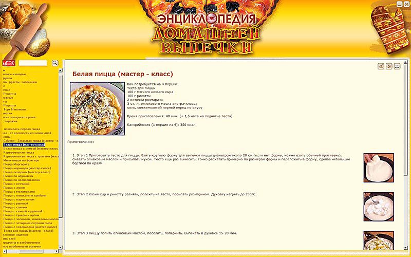 Домашнее хлебопечение стало очень популярным, именно ему посвящен один из разделов энциклопедии. На диске вы найдете информацию, как приготовить хлеб из разных видов муки, с добавлением цукатов и сухофруктов, а также как использовать молочные продукты в хлебопечении.