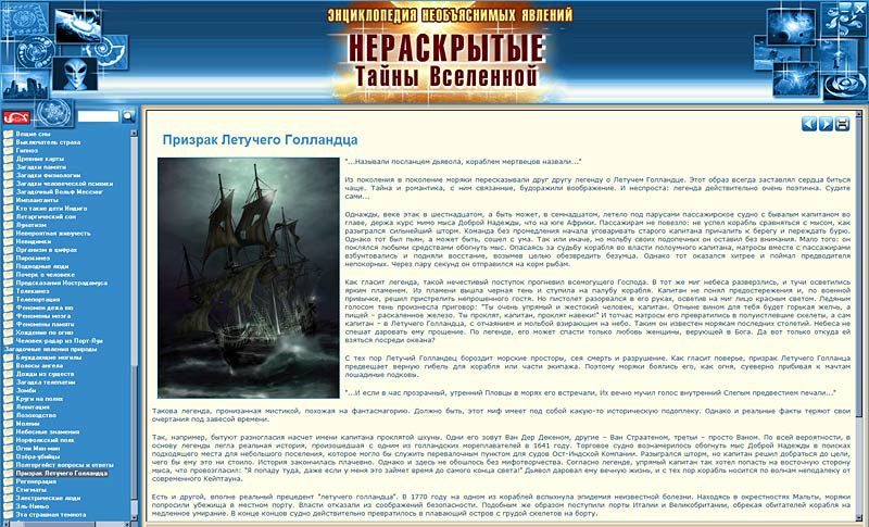 Вы интересуетесь таинственным миром сверхъестественного? Вы хотите побольше узнать о тайнах Земли и Вселенной: разгадана ли загадка Бермудского треугольника, откуда взялись таинственные круги на полях, существуют ли НЛО, в чем тайна полтергейста, телекинеза?