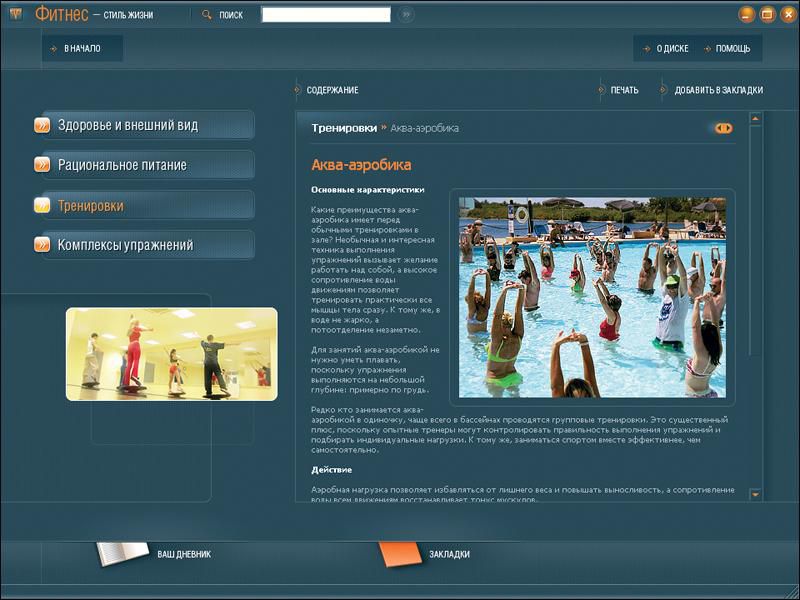 С ее помощью вы сможете подобрать индивидуальную систему упражнений и научитесь правильно питаться. Советы профессиональных диетологов помогут определить причины образования лишнего веса и найти оптимальный способ от него избавиться. Видеозаписи тренировок, проведенных профессиональными тренерами популярных московских фитнес-клубов, помогут усвоить упражнения различных методик – от бодибилдинга до пилатеса. Занимайтесь спортом – это актуально и модно!