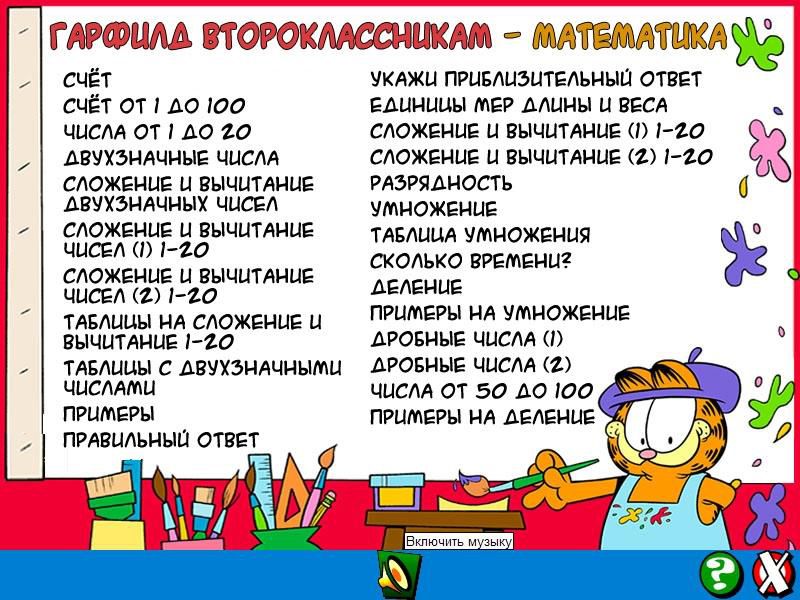 Гарфилд идет во второй класс! Сегодня первый урок – математика. Вместе с пушистым гением ребята узнают о последовательности чисел, попрактикуются в сложении, вычитании, умножении и делении.