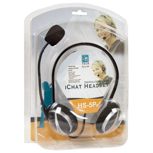 Поролоновые амбушюры позволяют использовать гарнитуру длительное время, не испытывая дискомфорта. Наушники обладают высокой чувствительностью. В шнур гарнитуры встроен регулятор громкости. Регулируемый микрофон A4Tech HS-5Pукреплен на гибком держателе. В комплектацию модели входит специальный крючок для крепления гарнитуры на мониторе.