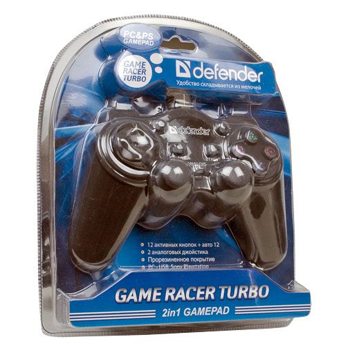 Геймпад Defender Game Racer Turbo отлично лежит в руке и потрясающе приятен на ощупь. Модель имеет мягкое прорезиненное покрытие. Два аналоговых джойстика позволяют играть в дополнительные игры, например, в футбольные симуляторы.