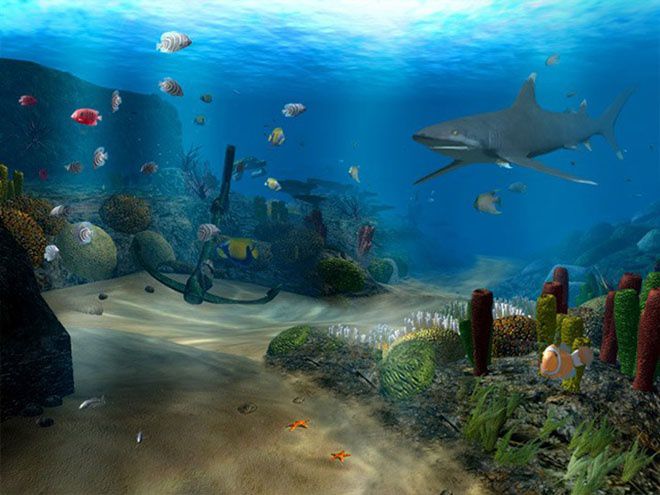 Десятки видов анимированных существ: тропические рыбы, акулы, черепахи и осьминоги