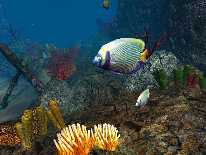 Этот диск - уникальная комбинация скринсейвера и компьютерной игры. Вас ждет свободное плавание по огромному и потрясающе красивому подводному миру. Запустите программу и перед вами откроются реалистичные, живые картины океанского дна: стайки разноцветных рыб, постоянно спешащие куда-то, затененные подводные пещеры и коралловые рифы. Расслабьтесь, откиньтесь в кресле и приготовьтесь к погружению в теплое тропическое море. Все будет почти по-настоящему, за исключением того, что вы останетесь сухим и вам не придется брать с собой акваланг...