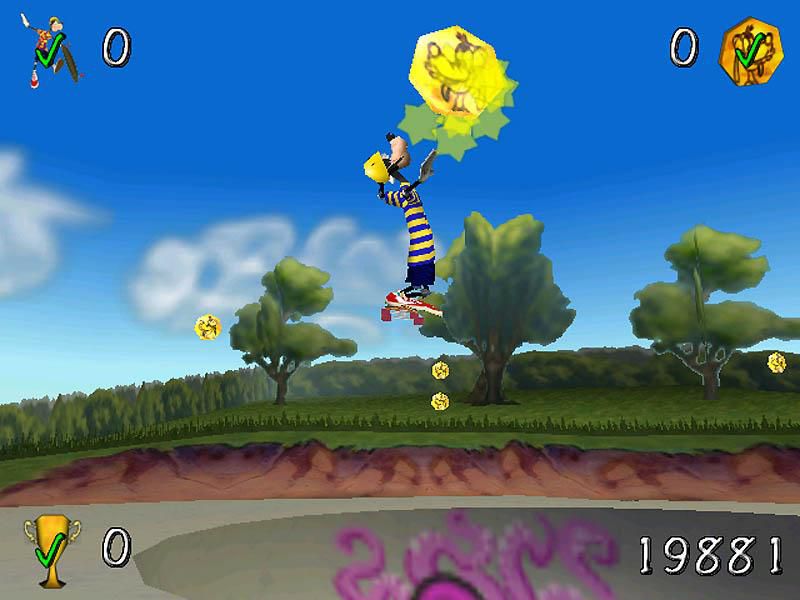 На этот раз Гуфи и Макс решили заняться спортом, и, конечно, они выбрали самый головокружительный способ провести свободное время – катаясь на скейтборде! В новой компьютерной игре друзья делают это везде, где только можно: в городах и парках, на пляжах и в каньонах, где их ждут сумасшедшие заезды, всевозможные трюки и необычные задания. Предупреждаем: задача научить Гуфи держаться на доске не из легких!