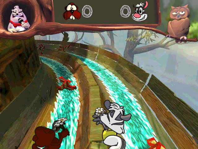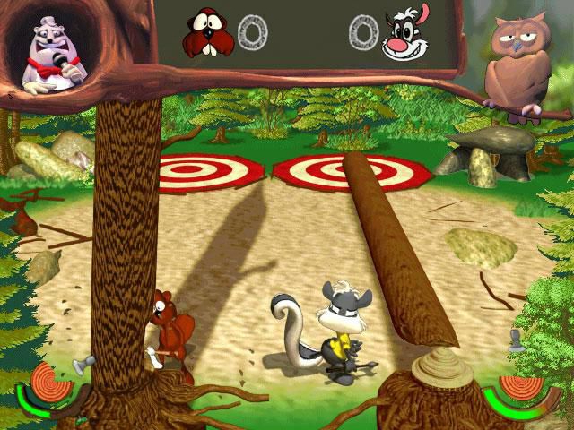 Среди этих игр встречаются такие сумасбродные дисциплины, как "Вулканические попадалки", "Камикадзе", "Лесорубы", "Сливомет" (стрельба по ежикам из сливового ружья!), а играть в них можно как с компьютером, так и против живого соперника - вдвоем на одной клавиатуре (это, впрочем, не совсем split-screen, так как оба виртуальных спортсмена всегда находятся в пределах одного экрана, и качество графики/размер экрана всегда одинаковые - то есть, на высоте!)