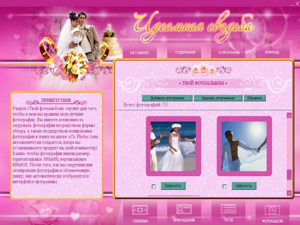 • Раздел «Твой фотоальбом» сохранит самые яркие моменты вашего торжества