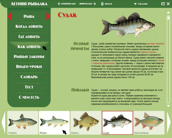• подробнейшая информация о рыбах и водоемах