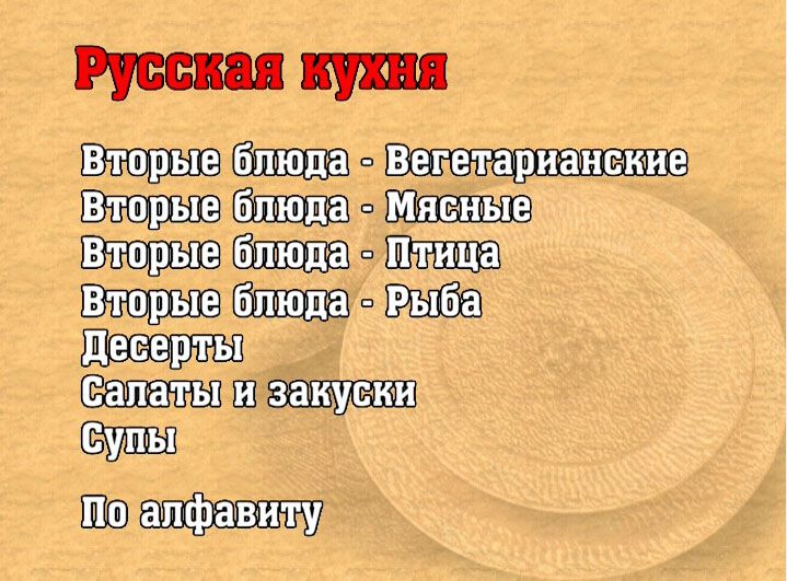 Вы сможете выбрать рецепт или по названию или по разделам: