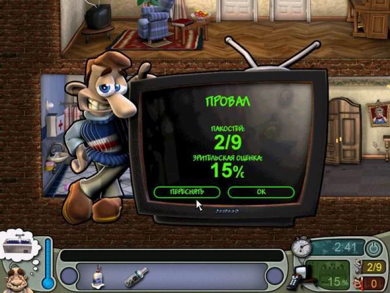 Зрители поддерживают Вуди бурными аплодисментами и награждают его хохотом всякий раз, когда срабатывает ловушка. Чем больше кипятится сосед, тем громче смех в зале. Но помните: Вуди не должен попадаться на глаза соседу, иначе ему несдобровать!