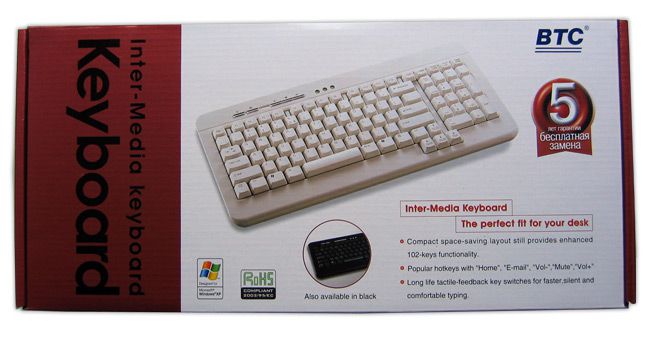 Вас приятно удивят бесшумные тактильные клавиши клавиатуры BTC 5149, а также пять дополнительных клавиш, позволяющих быстро и без труда загрузить Интернет, открыть программу электронной почты и отрегулировать звук Вашего мультимедийного проигрывателя.