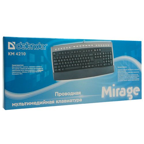 Стройность, изящность и красота слим-клавиатуры Defender Mirage привлекает взгляд пользователей. Ее стильный «фигуристый» дизайн идеально сочетается с LCD-мониторами. В дополнение к стандартному набору клавиш мультимедийная слим-клавиатура Defender Mirage имеет 19 «горячих» кнопок для управления средствами мультимедиа.