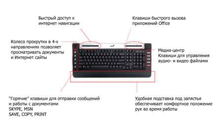- 23 клавиши быстрого доступа к мультимедийным функциям, Интернет навигации, отправке сообщений и приложениям Office