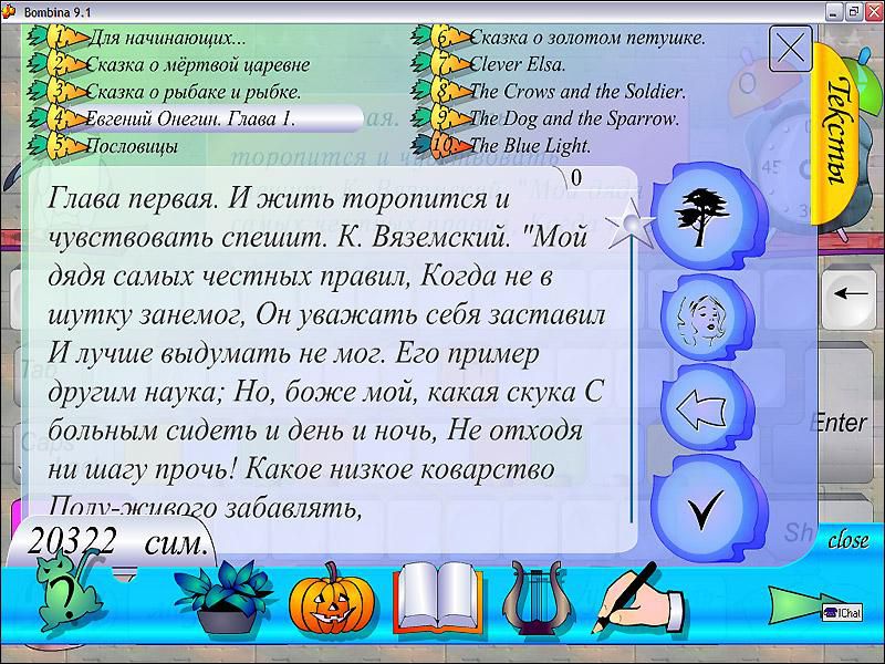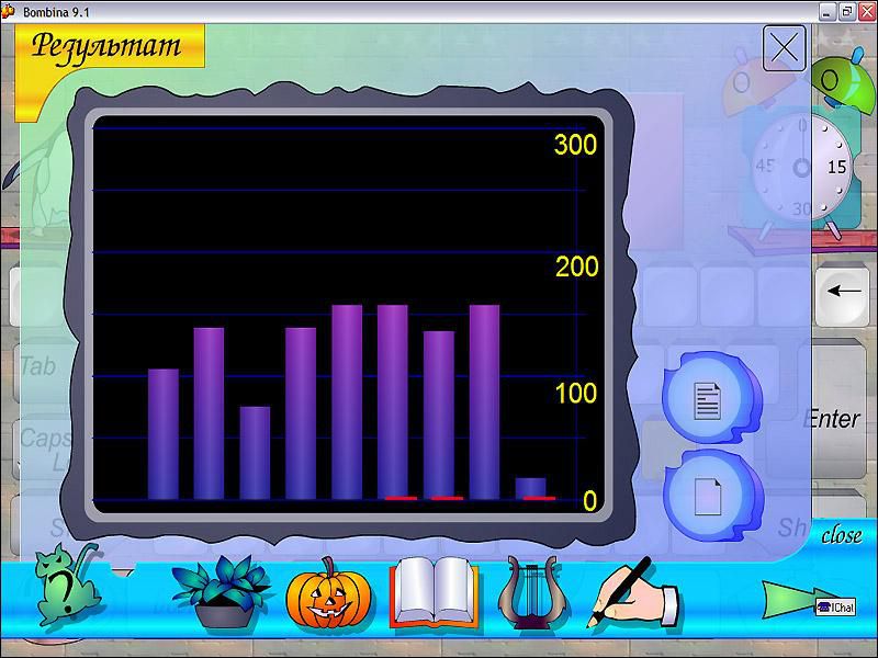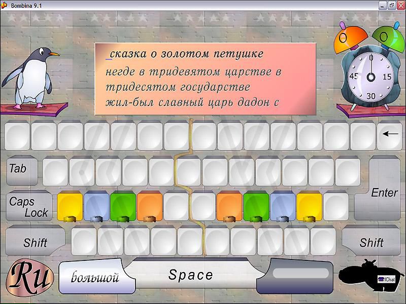 Тренажер "Бомбина" избавит от технических проблем и позволит ребенку сосредоточиться на учебе и общении. При регулярных занятиях русская и латинская клавиатура будут быстро освоены, и скорость набора достигнет более 300 знаков в минуту.