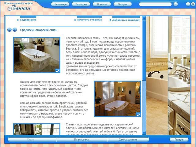 Ванная комната – одно из самых важных мест в доме. Здесь мы отдыхаем от забот вечером и заряжаемся энергией по утрам. А еще ванную называют домашним салоном красоты - значит, она и сама должна быть удобной и красивой. Как облагородить ее интерьер, сделать так, чтобы она нас радовала внешним видом и комфортом, выглядела привлекательной и современной? Ответ на этот и многие другие вопросы дает мультимедийное издание «Ванная» из серии «Коллекция интерьеров».