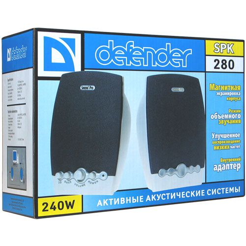 Компьютерная акустическая система Defender SPK-280 – самая крупная система среди пластиковых колонок Defender с ровным, мощным и сбалансированным звучанием. В акустике применен качественный 3-дюймовый динамик, параметры которого в точности рассчитаны под размер корпуса системы. Как итог, акустика Defender SPK-280 обладают уникальным сочетанием «цена-качество» и являются наилучшим решением для экономных пользователей.