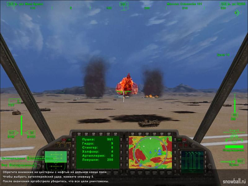 - Самый богатый выбор вооружения: пушки, снаряды, ракеты воздух-воздух, "Стингер" с инфракрасным наведением и "Хелфаер" с лазерным прицеливанием;
