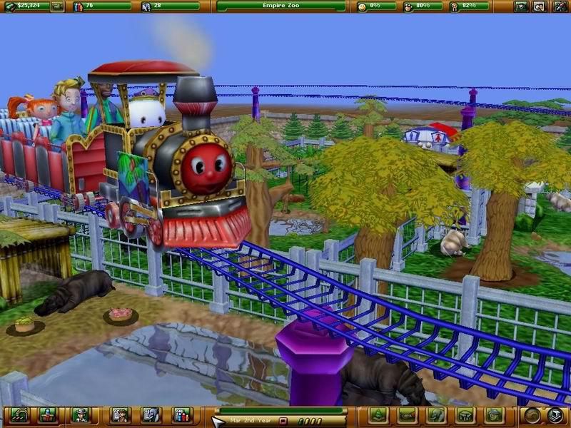 Добро пожаловать в зоопарк! Но вы в нем не праздный посетитель, и даже не экспонат! Вы - управляющий. А это значит, что просто так глазеть на слонов, обезьян и кенгуру а также ведрами поглощать поп-корн с кока-колой у вас не получится... Управляющему придется заботиться о процветании зоопарка, следить за здоровьем животных, строить новые вольеры и размещать аппараты по продаже напитков, привлекая тем самым все больше и больше посетителей... Это сложное, но и чертовски интересное занятие!