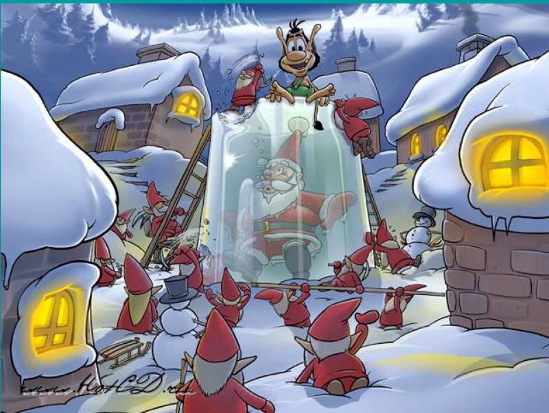Скоро Новый Год! В поселке Деда Мороза заканчиваются последние приготовления к празднику. Трудолюбивые маленькие эльфы собирают новогодние подарки и зажигают гирлянды на елках.