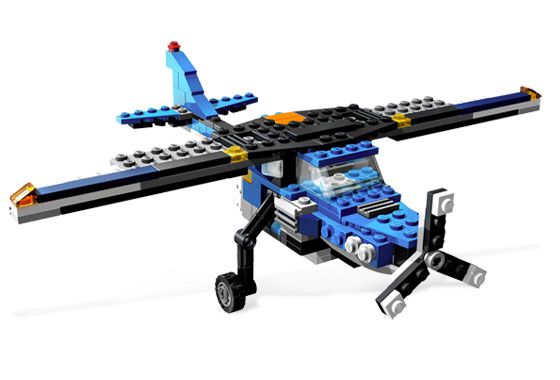 Так же набор позволяет собрать катер, у которого при помощи мотора поднимается якорь. Третьей моделью набора является самолет, в котором мотор приводит в движение пропеллер. Обе модели позволяют размести внутри них стандартную фигурку lego.
