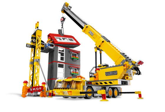В комплект набора входит телескопический кран, грузовик, экскаватор, строительный лифты и 5 фигурок рабочих. Строящееся здание имеет модульную систему. Так же в наборе есть множество дополнительных строительных аксессуаров.