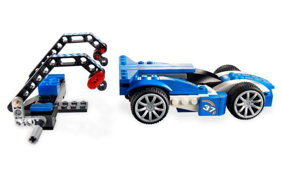 Синий гонщик считает себя самым быстрым и на это у него есть все основания. Отведите автомобиль назад зафиксируйте в стартовом механизме. 3… 2… 1… Старт!