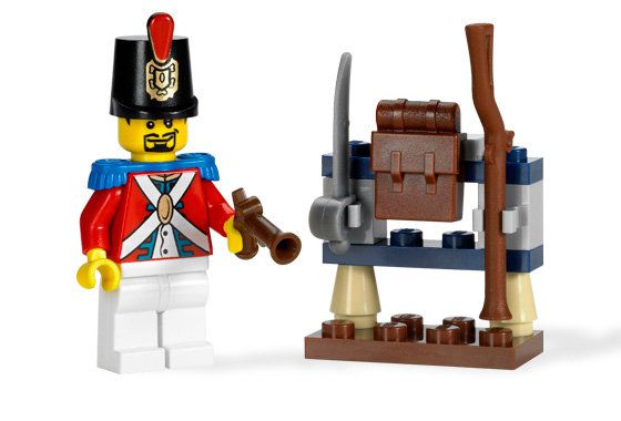 Защитите форт! Когда пираты нападают на форт, у этого солдата есть все необходимое, чтобы отбить их! Включает минимальный набор для солдата и принадлежности арсенала: револьвер, мушкет, ранец и меч! Постройте хранилище, чтобы держать арсенал организованным!
