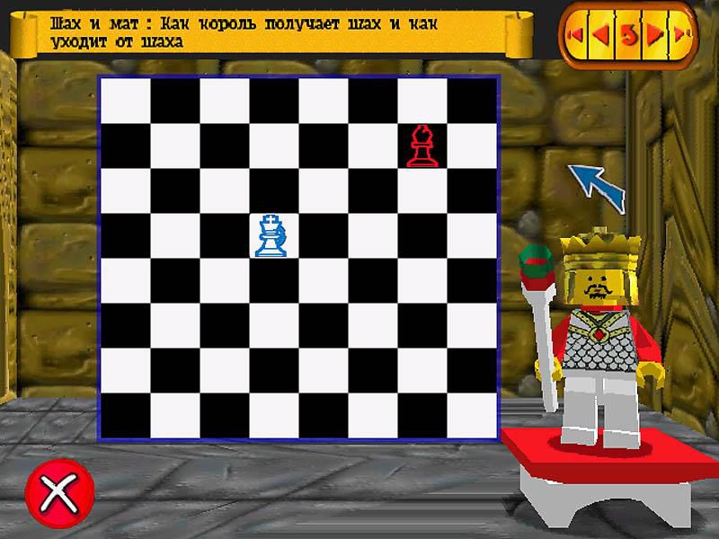 Если Вы садитесь за шахматную доску впервые, отзывчивый чудаковатый Король из замка LEGO объяснит Вам правила этой игры и поможет стать настоящим мастером. В его замке хранятся три древние книги с шахматными правилами, которые помогут Вам разобраться в различных игровых комбинациях.